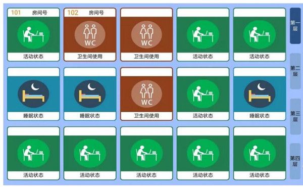 没有摄像监控,无需穿戴设备,没有学习成本,不改变长者生活习惯。只需在房间关键位置安装传感装置,系统便能自动记录长者在室内的行动轨迹、生活习惯和生理数据等大数据信息。同时依靠其强大的逻辑运算能力,分析和判断长者的行为轨迹,规律状况和异常。一旦发现长者行为异常,或生理数据异常,立刻根据时间和区域确定异常级别,及时通知相关人员。以智能的方式全方位关注长者安全和健康,及时掌握长者室内安全情况。